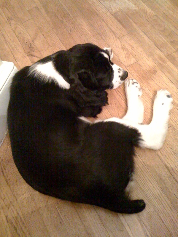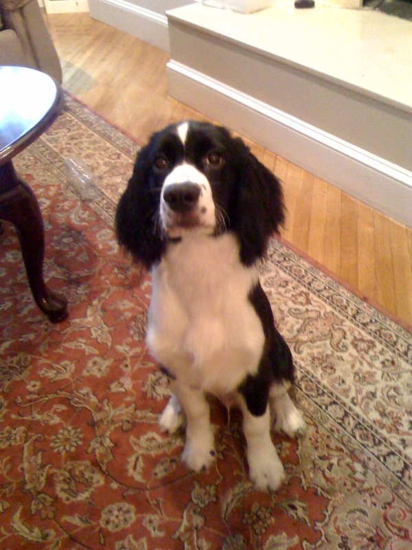 He had some challenges with Daisy, his best buddy from class #1, who kept coming over to say hello, and there were a few new furry faces in the class. So we’ll work on that… but the incredible news; Riley demonstrated his aptitude for agility challenges: during full-on puppy play, the class instructor pulled out a hoop when she saw Riley leaping over some of the other puppies – and he not only made a beeline for it, he leapt through it perfectly.. without any treat enticement! (It’s looking more and more like mommy and daddy have a very smart little boy on their hands!)