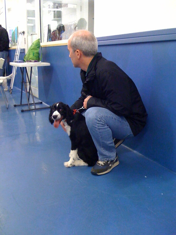 While grandpa slept in (and daddy probably wished that he had too) grandma came with us to puppy obedience class #2… where he aced the “sit” and “stay” tests, despite a very distracting environment!